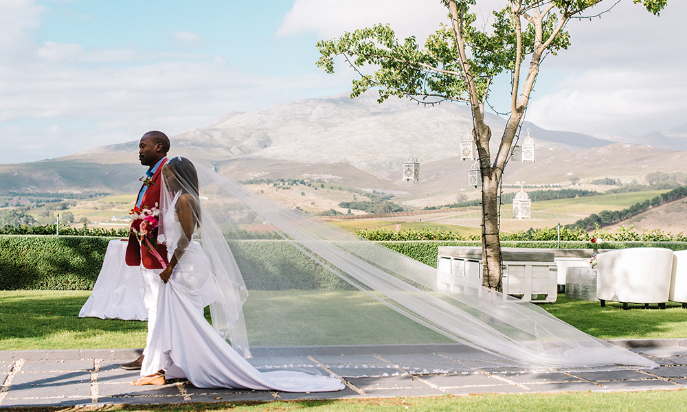 The grand wedding took place at Bona Dea Private Estate, an award-winning wedding venue in Overberg, South Africa. The sprawling property is hailed as one of the most quixotic and picturesque locations in South Africa owing to its breathtaking vineyards along with the natural landscape beyond the spectacular terraces designed to perfection.