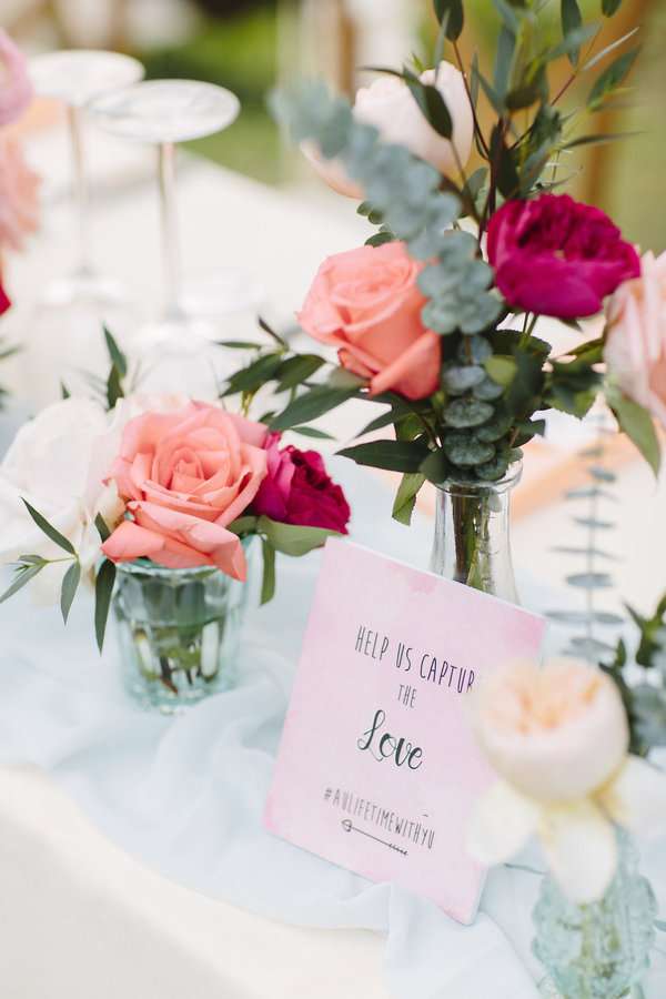 Annie, a passionate traveller, sport aficionado, an artist at heart, took her wedding as a creative canvas. She wanted to bring as much personality into this wedding as possible, so expert planners Nanya and Jess of the The Wedding Bliss Thailand incorporated her love for watercolors and calligraphy into her wedding design. With the playful yet subtle palette of pink and coral and a touch of a soft greenery with blue hues, the ambience was romantic with softly shifting ombre effect in all florals, added tie-dyed sashes for the chairs.