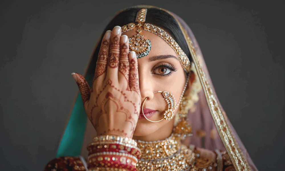 Why is this photo so close to my heart? Because it represents a convergence of history, innovation, and deeply personal storytelling — both for me and the couple in front of my lens. But what truly matters is what this image says. It’s a portrait of quiet strength and tradition, captured in a way that’s intimate and timeless. The bride’s poised elegance, her intricate mehndi, and the single uncovered eye — all of it telling a story far beyond the frame.