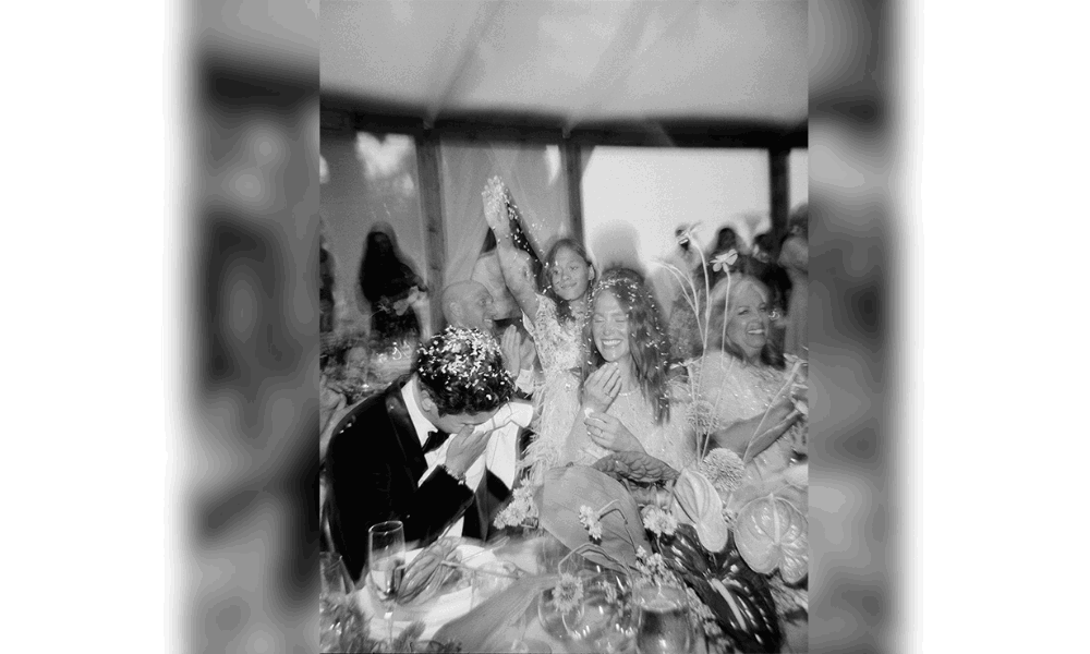 This photograph captures the essence of what we stand for. The bride is at the heart of the frame – beautiful, radiant, confident, and entirely herself – while the use of flash gives the image that unmistakable editorial edge. Yet what makes this photo truly powerful is everything surrounding her. The scene is filled with different lenses, each with a singular mission: to preserve love in its many forms. And in that, this photo becomes not just a portrait of a bride, but a time capsule of how we now experience love, beauty, and celebration.