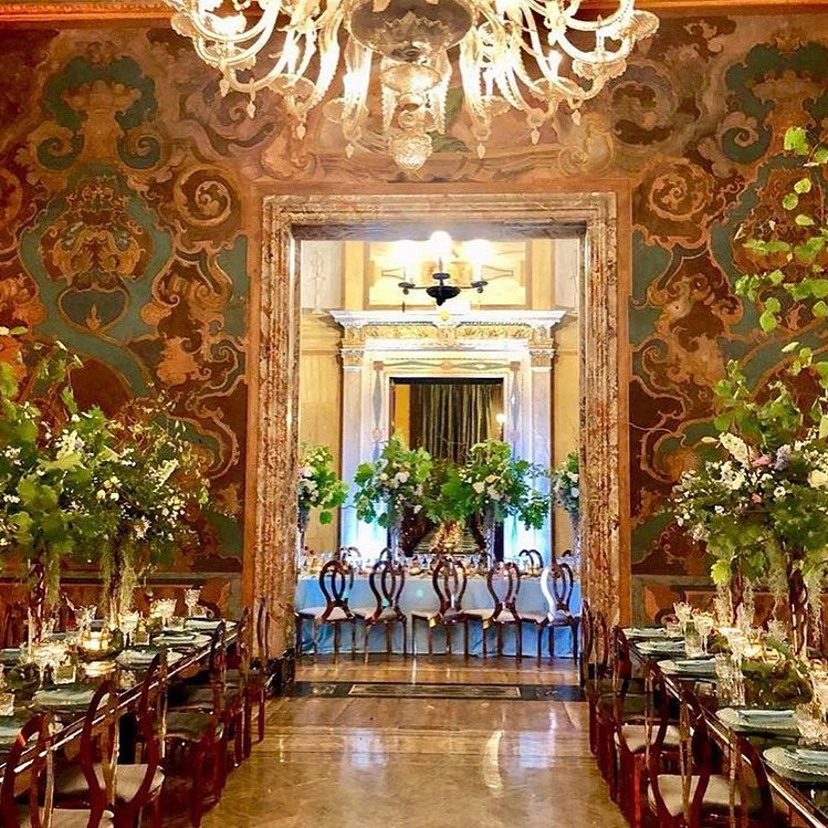 Our inspiration for the dinner at Villa Erba were the great American gala dinners and we wanted to add a touch of our Italian culture which was possible due to the enchanting venue and the beautiful mirrored furniture.