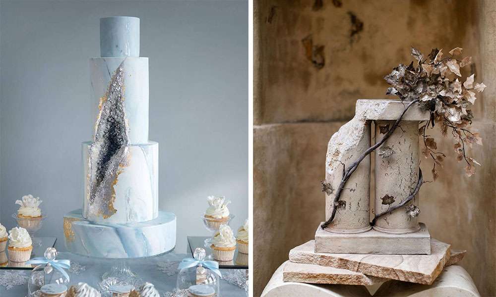 Cake designers are baking up big day desserts that are nothing short of a work of art, literally. Sweet wedding treats are hand-painted employing loose, painterly brush strokes to create beautiful, texture-rich designs that look like an impressionist masterpiece. Geode, marble texture, ruffles and wafer paper cake are some of the directions you should take.