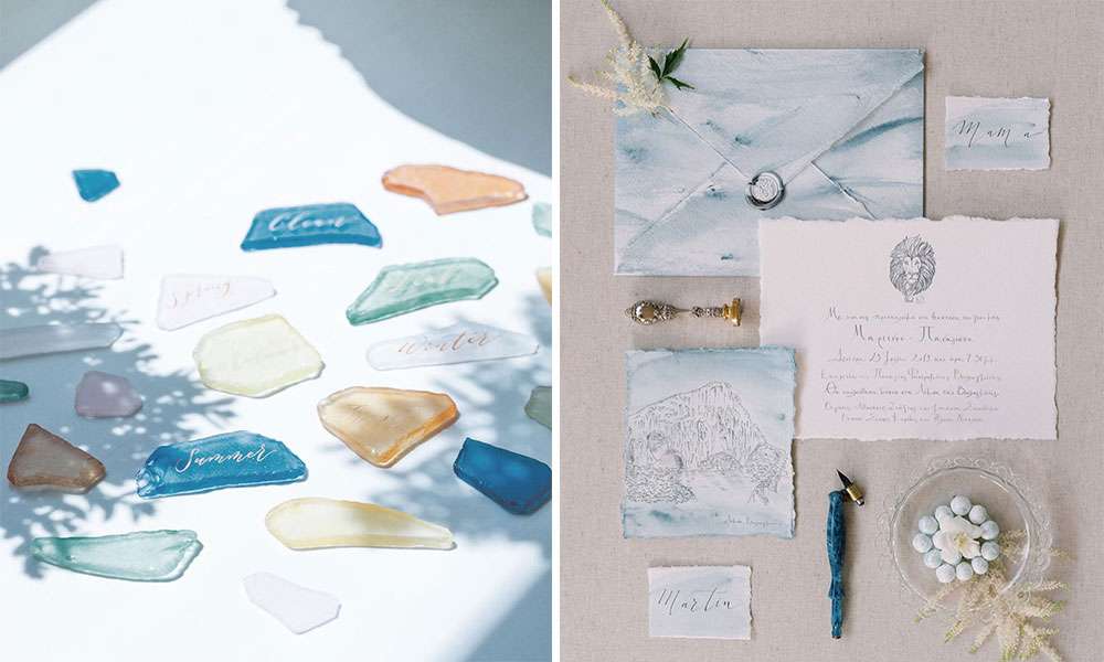 It’s all in the details when it comes to incorporating art into your wedding. A calligrapher can magnify the art intensity by beautifully sculpting your words. Take an artsy spin on the traditional card table and welcome guests to the reception with names crafted on a stone or quartz.