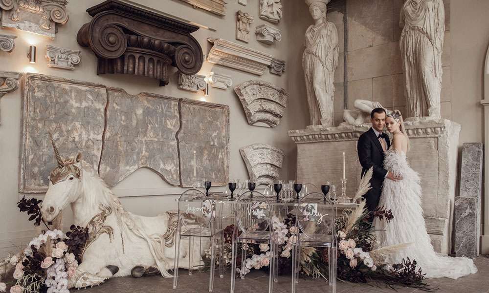 Try finding a venue with Sistine Chapel vibes—think of a property with Renaissance-inspired paintings or timeless sculptures. One such venue is Aynhoe Park which is full of surreal, extraordinary, quirky and extravagant head-turning props and collectibles. It’s filled with sparkle, glamour and mystery that will surely make you feel like you are time traveling with your beau in a parallel universe.