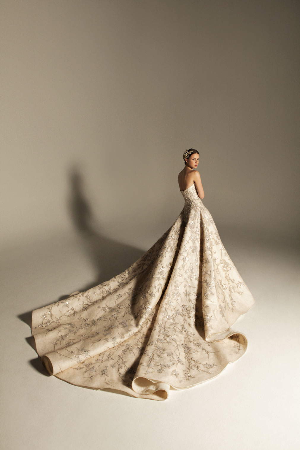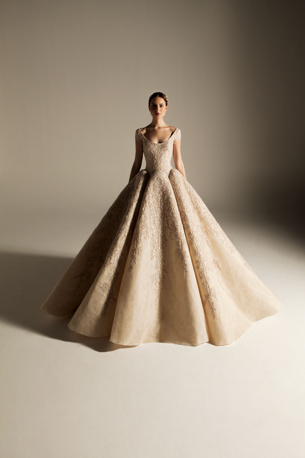 Lebanese design atelier of Krikor Jabotian is a preferred elite bridal couturier who spins in refined craftsmanship into his opulent fabrics to create a timeless message of heritage, style, tradition and innovation. His 2018 bridal collection absolutely hits the mark of elegant, richly embroidered masterpieces that deserve nothing but absolute attention. The princess-y silhouettes, lush ivory and beige colour palettes and hand stitched embellishments make sure that all eyes will be on you.