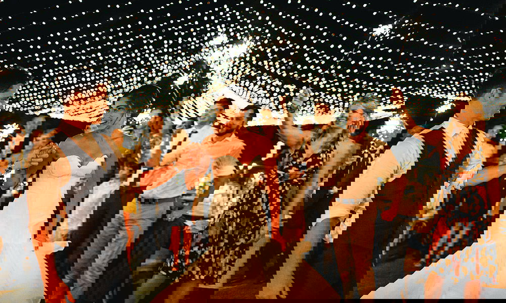 The reception was hosted outdoors where the couple made a grand entrance under a canopy of fairy lights and an archway of sparklers. “Music starts, We get married, Everyone parties”. This was the ultimate motive behind the vogueish revelries that developed into Laurel and Michael’s dream destination wedding.