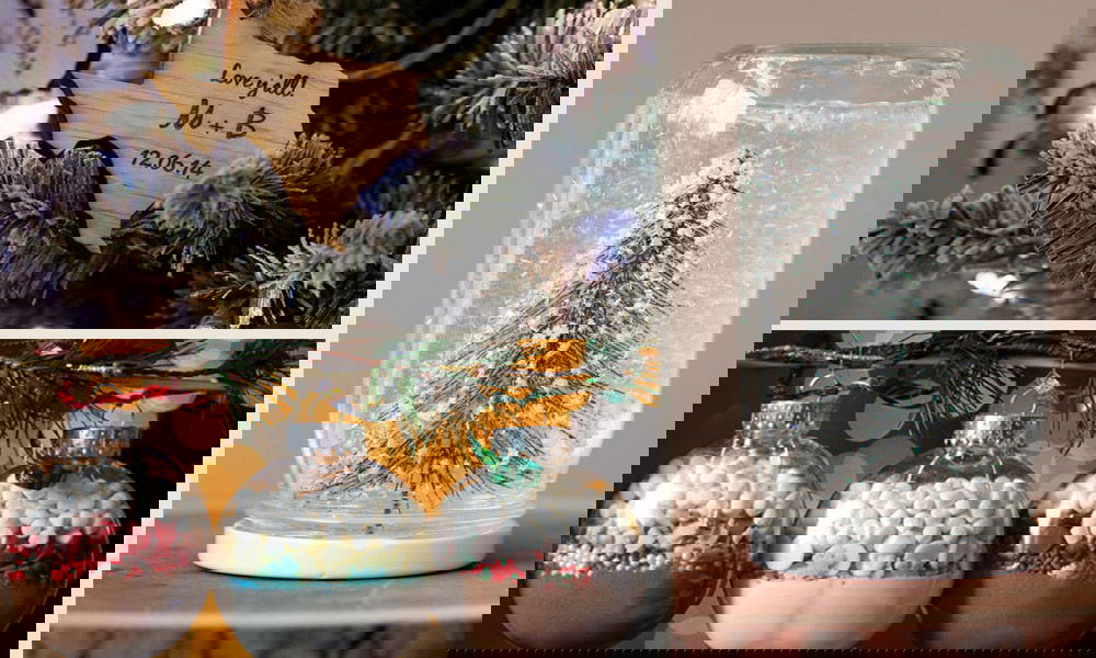 Incorporate the festive occasion into your favours, like this couple who decided to give out Christmas tree ornaments. Hot chocolate is a classic pick for winter. But there are so many more creative ways to serve it than in a packet — like in a Christmas bauble. Mason jar snow globes are a cinch to make. Create a wintry scene or fill them with meaningful trinkets.