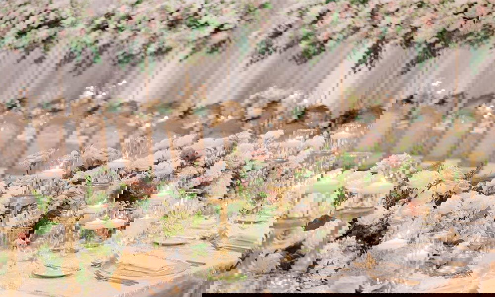Set up your lush tablescapes with pastel hued blossoms and metallic accented glassware for an overall look that is chic and regal. The delicate blend of colours like blush and ivory florals, verdant foliage and gilded tableware would look absolutely ethereal.