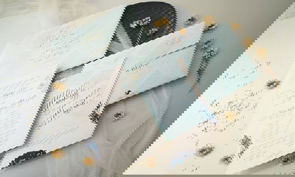 Designed to perfection with textured elements like a watercolour finish or a marbled effect can be paired with tints of aqua or peach. This would add a splash of colour to your wedding stationary.
