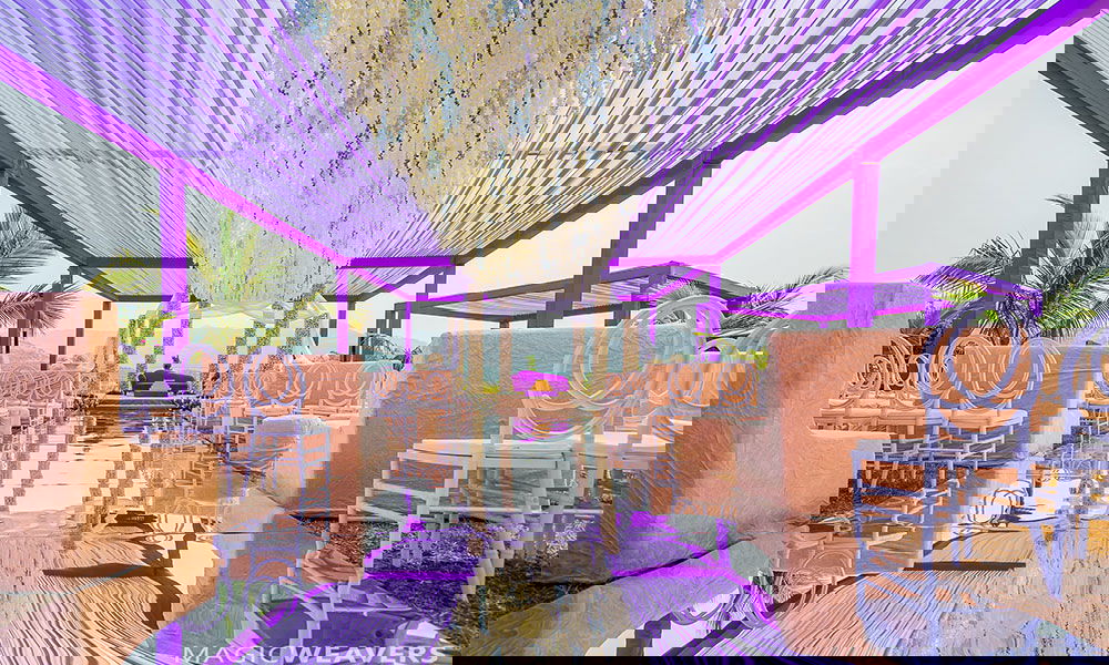 Opt for a striking, stylish overhead canopy drenched in a shade of lavender or teal. It would provide the right amount of brightness yet look extremely sophisticated with the muted elements of décor.