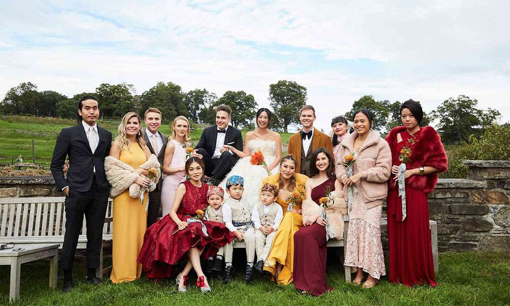 Autumn is known for its rich warmth and all the spicy hues that come with it. In deep shades of mauve, ochre, crimson, saffron, amber, and burgundy, this wedding party is equal parts chic and practical—all topped in coordinating faux fur jackets no less.