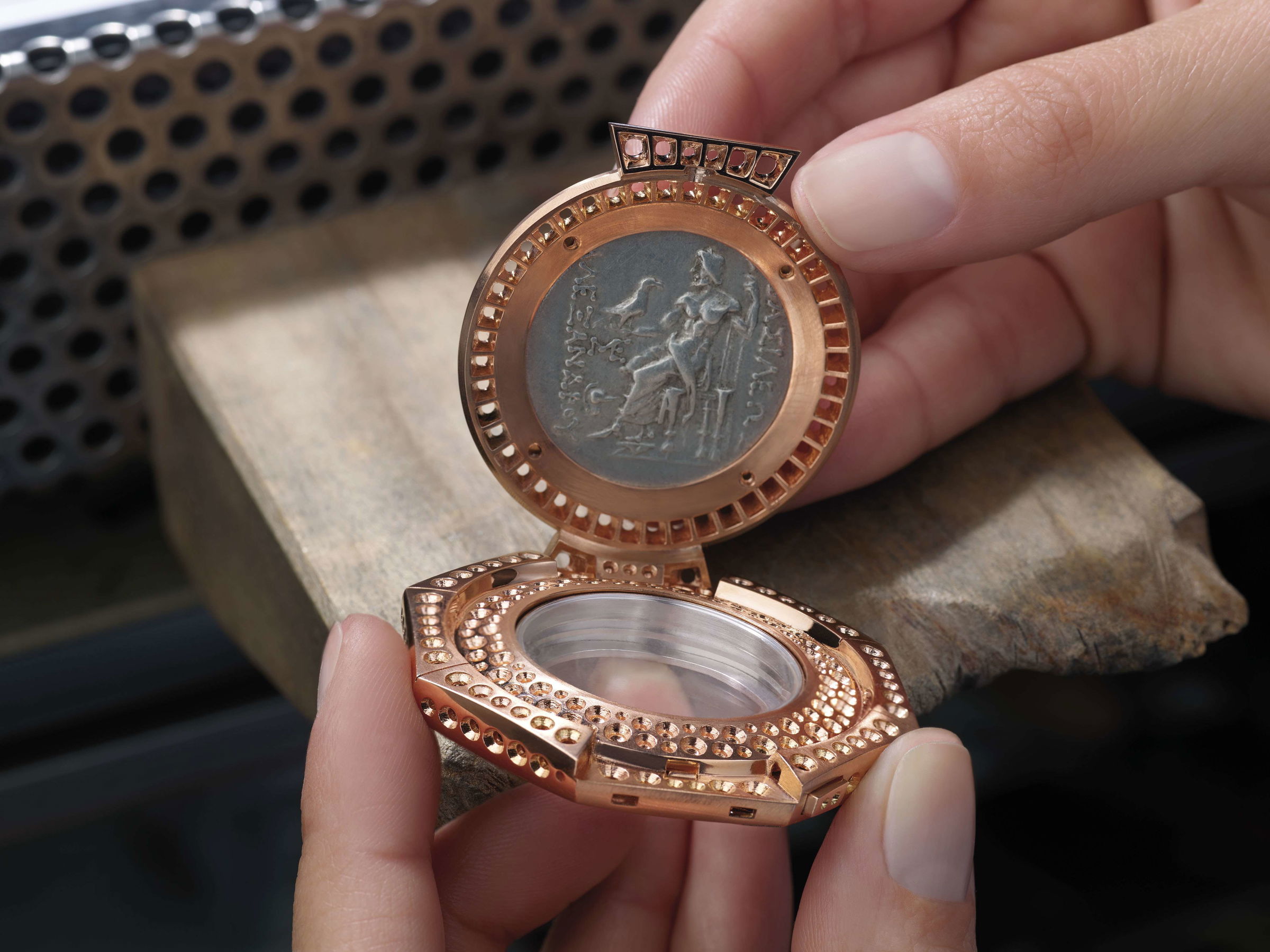 As a tribute to the Greek roots of founder Sotirios Bulgari, whose iconic brand was enhanced and elevated by Roman influences, 2017 saw the launch of the Monete secret-watch pendant by Bulgari. The statement piece is a perfect alliance of savoir-faire between Bulgari’s watchmakers and goldsmiths, embodying the best of what the Italian brand offers.