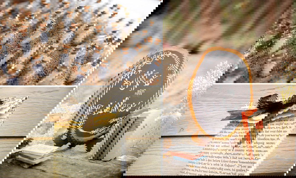 Pick your favourite book covers to create place cards and use library checkout cards as an indication of the seating arrangements as a quirky nod to your love for literature and libraries. If your life is an open book, why not have a literal installation of the same at every table as part of the décor?